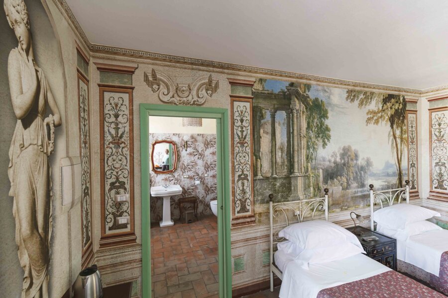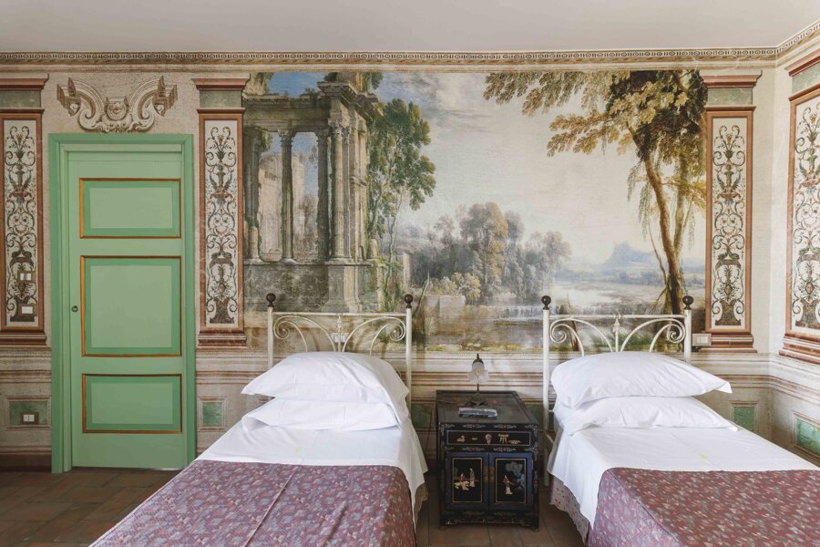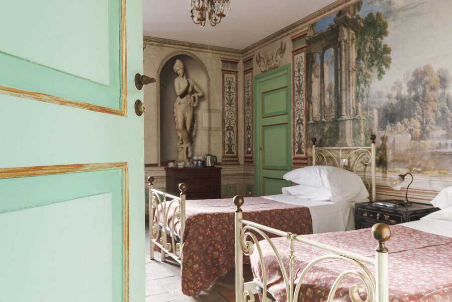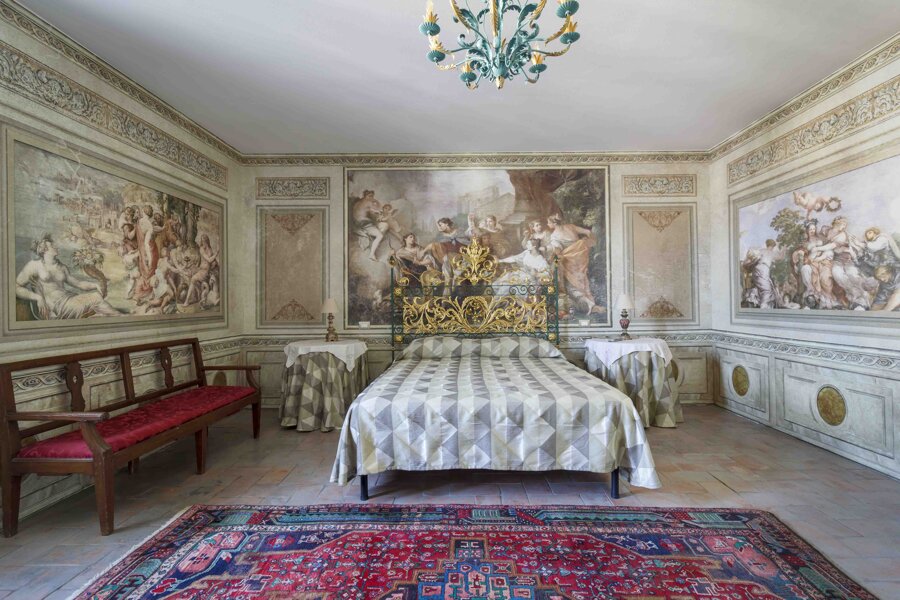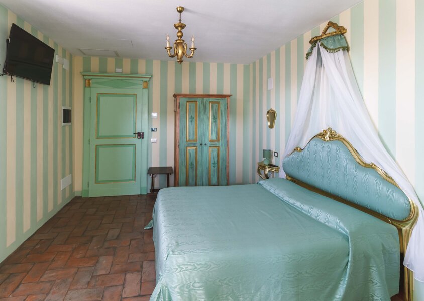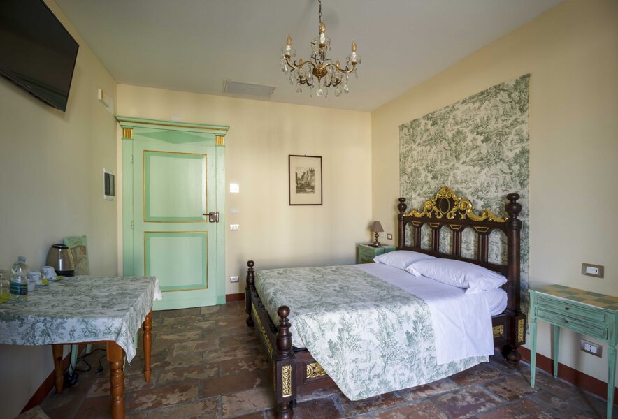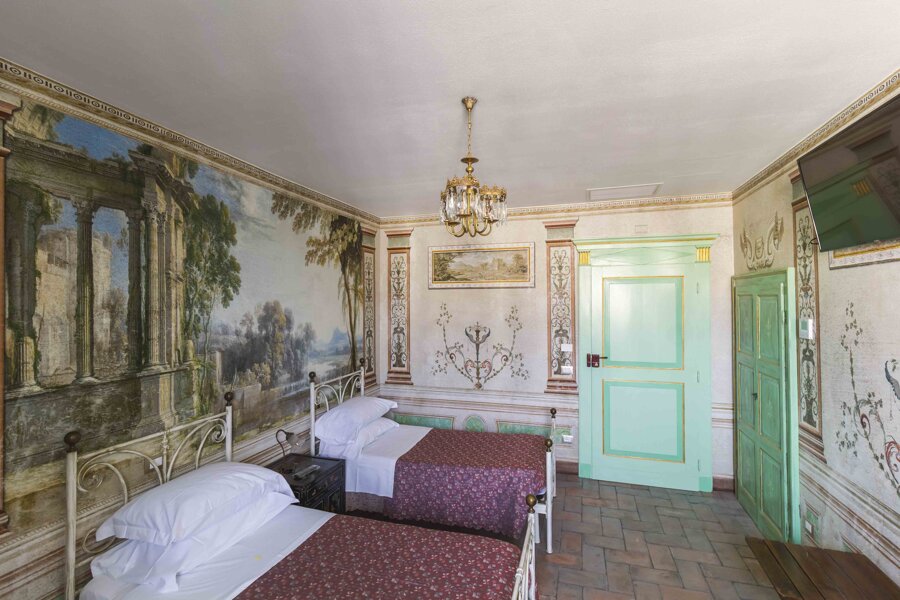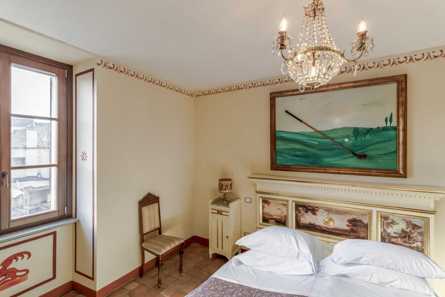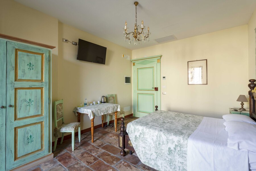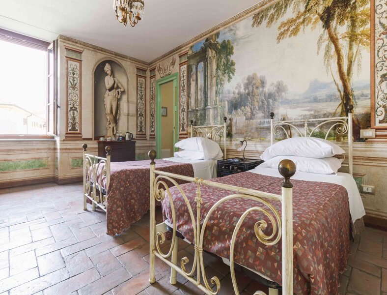 Anche la Camera Giovanni de Medici è situata al piano nobile del Castello. Un'accogliente camera affrescata con 2 letti singoli , dettagli preziosi che la rendono unica.