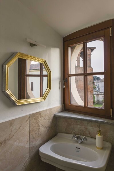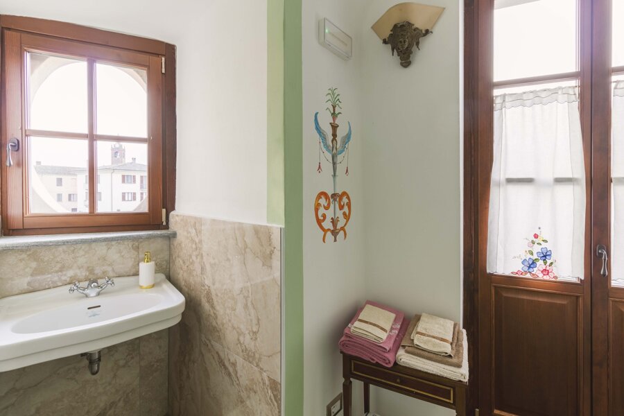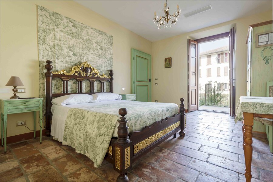 E' una delle stanze più belle del Castello Beccaria, posta al secondo piano della struttura con vista sul tramonto. Il letto matrimoniale King size ha un materasso in lattice e doghe in legno. Il riscaldamento è a soffitto con termostato interno alla camera. Il sistema è integrato con condizionatore caldo-freddo. Il pavimento è in cotto, compreso il bagno dedicato.
